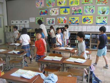 また,トルコ行進曲を聴き,2拍子に合わせて,行進もしました。2拍子の感じを体で感じることができました。