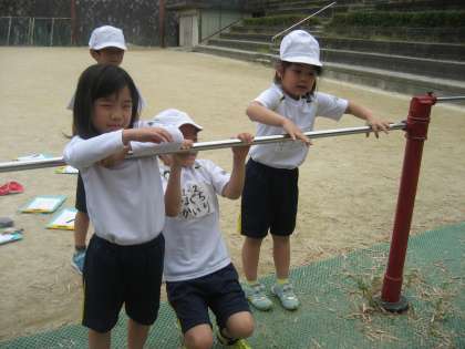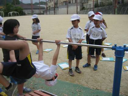 逆上がりは,練習台を使うと,できるのですが,ないと難しいようで苦戦していました。何度も練習して,できるようになるといいなと思います。