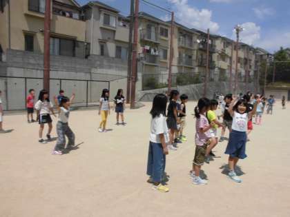 今日はドッジボールをしました。クラスみんなで遊ぶとより一層楽しいです。暑い中,体を動かしてたくさん汗をかきました。
