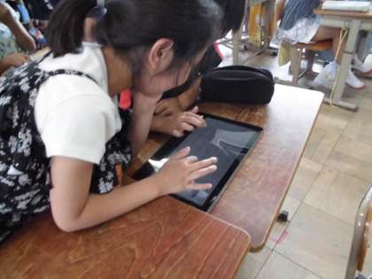 今日は,初めてタブレットを使って調べる方法を学習しました。電源を入れたり,文字を入力したり,楽しんで学習していました。
