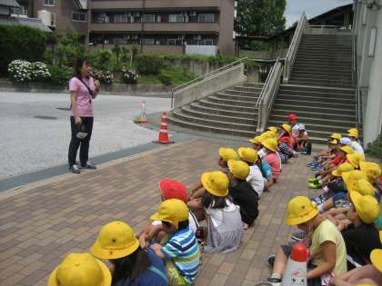 車が通る道を歩くので,一列に並んで歩くことや,どんなところを見るのかなど,注意事項をしっかりと聞いて出発しました。