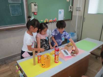 いろいろなかたちの箱を仲間分けしました。