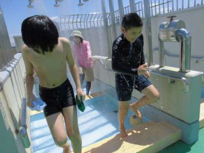 初めに,「カエルの歌」を歌っている間は腰洗い槽につかります。