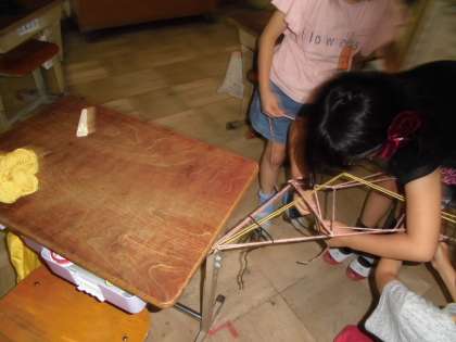 「ひもをつないで,とっておきの世界をつくろう」をめあてに,友達と協力・相談しながらグループで楽しく活動することができていました。