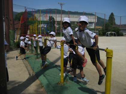 坂になっている練習台を使ったら,逆上がりができる子も多く,逆上がりに近づいてきています。もうひと頑張り!
