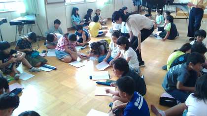 今日の音楽の時間に,学年合同で演奏会をしました。