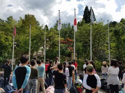 4日間お世話になった花背山の家に感謝し,学校へ戻ります。