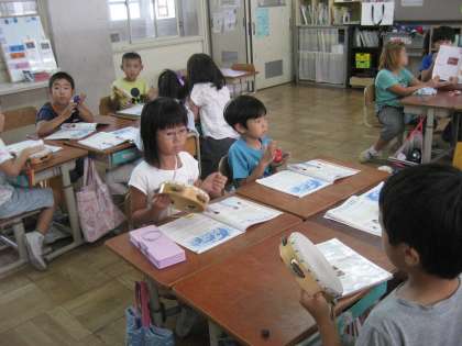 音楽の時間に「イルカはざんぶらこ」の曲に合わせて,リズム打ちをしました。