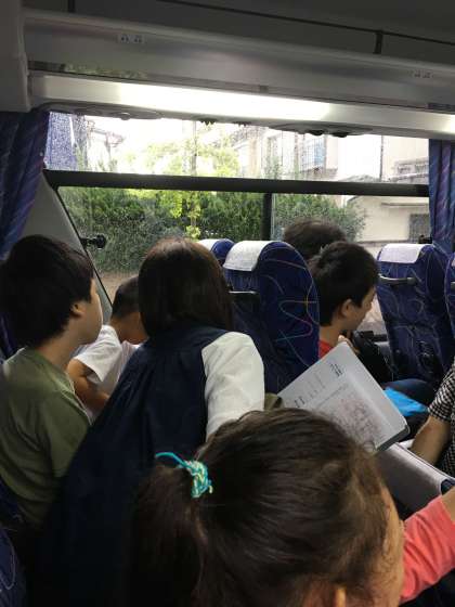 子どもたちは,わくわくしながら,バスに乗っています。