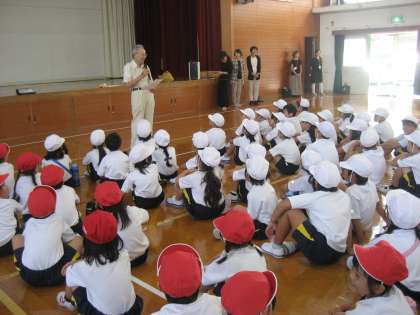 なんと,大枝音頭は65年も前に作られたそうです。その頃の小学生が歌を歌い,教員の方が伴奏されたCDも聞かせていただきました。