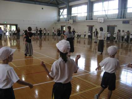 運動会で踊る大枝音頭の練習をしました。大枝音頭保存会の方や,地域の方に踊り方を教えていただきました。