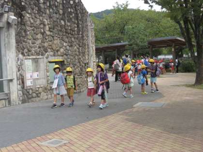 学校探検や春の遠足で一緒に活動したグループで,地図と問題を片手に,動物園の中を協力して回りました。クイズにも頑張って,取り組んでいました。