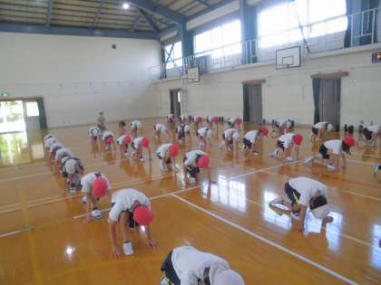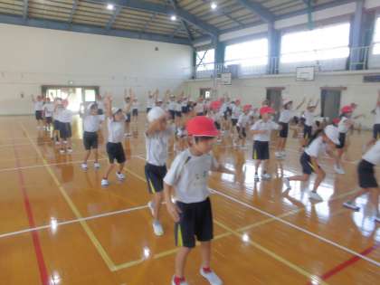 今週から運動会の練習を始めています。今日は,3・4年生の団体演技「京炎そでふれ」の練習をしました。子どもたちは覚えるのが早く,いきいきと演技をしています。手の伸ばし方や顔の向きなど細かいところまで揃えて演技をすると,とてもかっこよくなりました。これからも練習が続きます。がんばります!