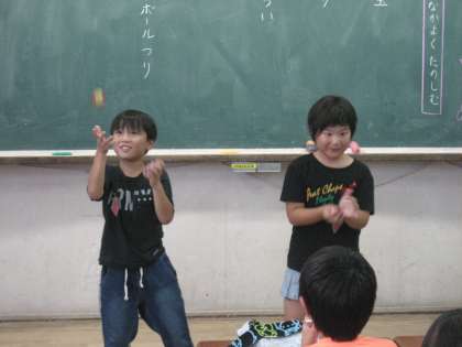 今回は,それぞれやりたい出し物に分かれて,出し物を見あいました。こま,お手玉,マジック,お笑いの出し物を見た後,スーパーボール釣りを企画したグループがあったので,みんなでスーパーボール釣りを楽しみました。