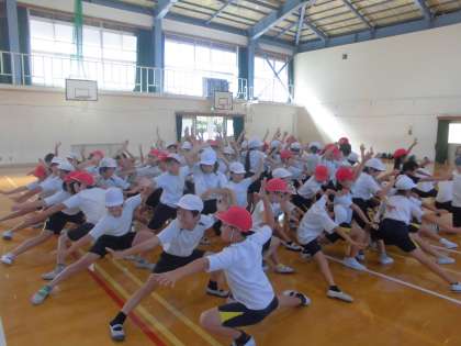 3・4年生団体演技「京炎そでふれ」の練習が進んでいます。最後の決めのポーズをして,掛け声も合わせます。演技に迫力が出てきました。