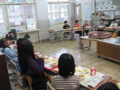待ちに待った給食の時間です。久しぶりの給食でしたが,みんなもりもり食べていました。