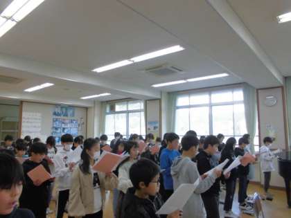 学年で音楽の学習をしました。「旅立ちの日に」では繰り返しの歌詞をどのように歌うのか工夫をしながら練習をしました。「八木節」では各パートが力強い演奏でとても迫力のあるものになりました。みんなで力を合わせての合奏や合唱は素敵ですね。