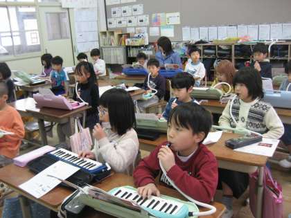 それぞれが考えた伴奏を一斉に合わせたら,音が汚くなるのかと思ったのですが,音の重なりがきれいで,驚いていました。