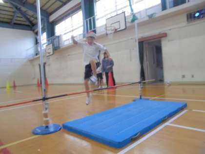 体育の授業で,走り高跳びをしました。バーを落とさないように,助走をつけて思いっきり高く跳びました。みんな自分なりの跳び方で,バーを落とさずクリアすることができました。跳ぶことが,楽しくて何回も跳んでいました。