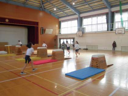 体育のとび箱運動では,できる技の高さや難しい跳び方に挑戦しています。8段を軽々と跳び,「もっと高い高さもやってみたい!」という児童もいました。友達どうしでアドバイスをし合ったり,喜び合ったりして楽しく活動をしています。