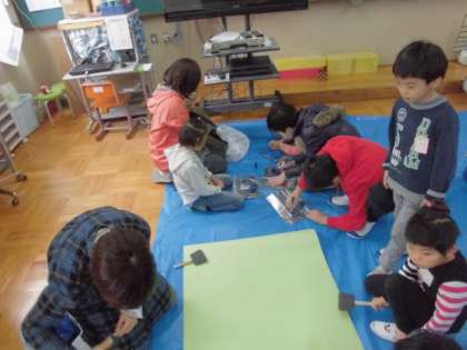 境谷小学校に4校(大枝・桂坂・新林・境谷小学校)の小学校の児童が集まって,小さな巨匠展に向けて作品作りをしました。今年度のテーマは「住みたいなこんな街」です。児童の自由な発想で,「街」を飾る作品を作りました。児童の作品で躍動感のある街が,できるのが楽しみです。