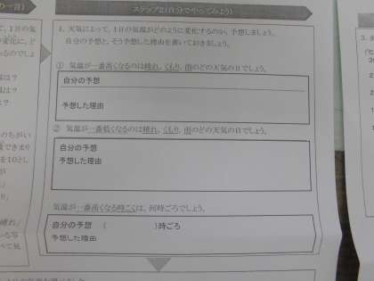 今日の理科の課題でわかりにくいところがあったのでお知らせします。グラフの値がずれているようです。わかりにくいので,グラフはかかなくて良いので,1枚目の予想と理由まで書いておきましょうね!写真の1枚目までやって,2枚目はやらなくて良いですよ!がんばってね!