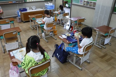 昨日から給食が始まりました。3時間目ぐらいから,「お腹がすいた〜」という子どもたちです。4時間目の学級活動の時間に,給食の準備や並べ方などを学びました。先生の話をしっかりと聞き,準備から片づけまでスムーズにできました。Aグループ・Bグループでメニューは違いましたが,みんな大満足の給食でした!これからどんな給食がまっているのか,楽しみですね!
