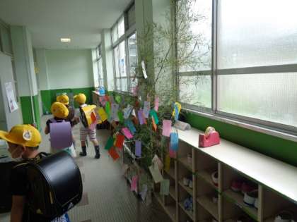 子ども達は,自分たちの願いを短冊にかいて,笹に縛り付けました。