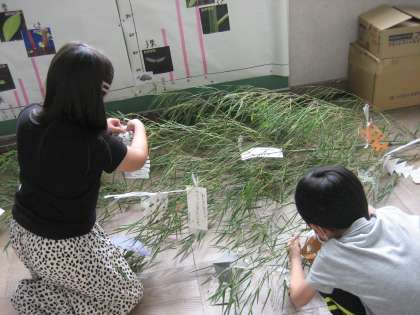 地域の方のご厚意で,笹をいただき,七夕の飾りを作り飾りました。