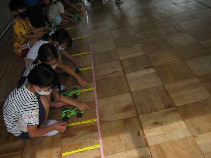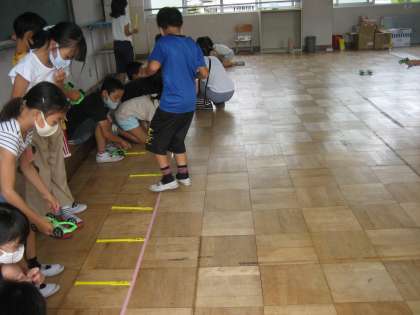ゴールを越えてしまうことが多く,ゴムをどれぐらい引っ張れば,うまくゴールで止まるのか,考えていました。今後,どのような学習が進んでいくのか楽しみですね。