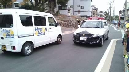 校区探検をしているとパトカーが通りました。