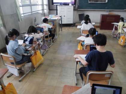 今日は,練習としてロイロノートに自分の好きな食べ物など自己紹介的にシートを作成shい提出箱というフォルダに提出して,共有するということをしました。ロイロノートならではの機能を使っていろいろ楽しく活動していました。