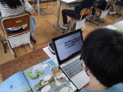 理科「季節の生き物」の学習で春のまとめをしました。ロイロノートを使って,写真をつないでまとめをしています。みんなで共有することができ,交流が活発にできました。