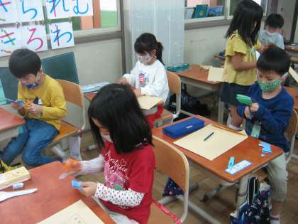 図画工作科の「ちょきちょきかざり」に取り組みました。今回は,自分たちで工夫を凝らして,切りました。