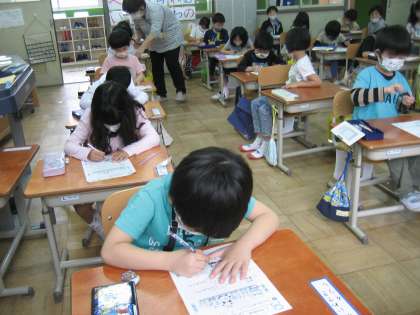 「何番目」のプレテストをしました。「右から2番目」と「右から2ひき」の違いに気を付けながら,みんな真剣に取り組んでいました。