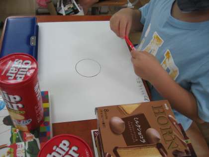 今日は,持ってきた箱の形を写して,それを生かした絵をかきました。