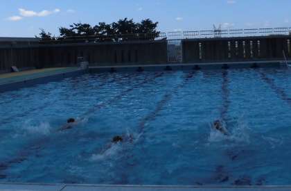 青天の下 今年度最後の水泳学習を行いました。はじめのころよりも泳げるようになったよと嬉しそうに話している子どももいました。いろいろとご準備等ありがとうございました。