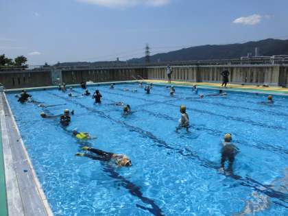 着衣入水では,水難事故にあった際にどうやって自分の命を守るのか,どうやって人の命を救うのかを体験を通して学びました。
