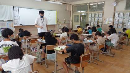 久しぶりに友達に会えたのが,学校に来た人から4連休の楽しかったことを友達と話す姿がありました。でも,9時になると切り替えて,夏休みの課題に向き合って自分のペースで取り組むことができていました。