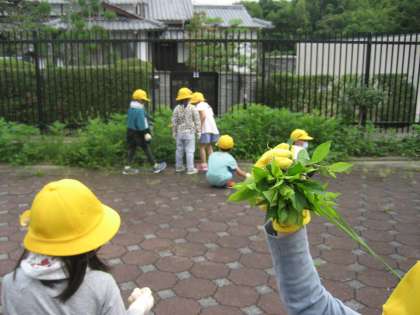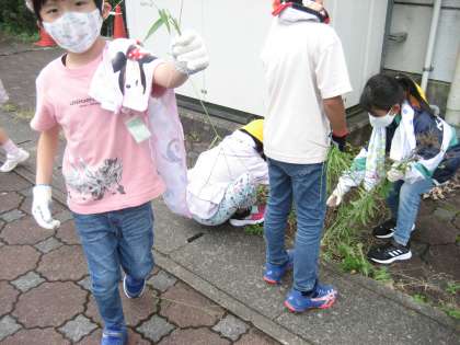 校内草引きをしました。1年生は,「竹馬広場」が担当でした。