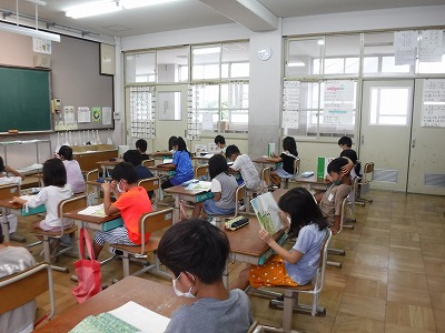 二学期がスタートして二日目,登校後の朝読書の時間です。今日は教科書の中から,「レミーのすてきなぼうし」をみんなで読みました。読書の時間をしっかりと確保し,本に慣れ親しむことを大切にしていきます。
