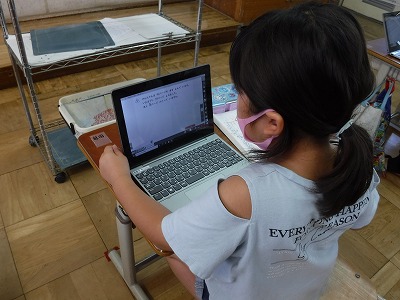 さんすうの学習で1学期の復習に取り組みました。デジタル教科書を活用し,問題ができれば自分で答えを確認できるようにすることで,それぞれのペースに合わせてがんばることができました。