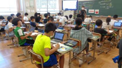 今日の5時間目の算数は,「円の面積」の3回目の学習です。徐々にグループにも慣れてきた様子です。今日は,どのグループも「円の面積の公式」を考えました。