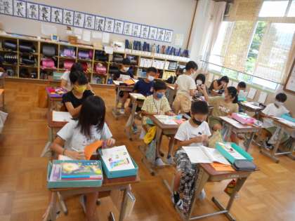 家庭科の学習で整理・整頓の話をしました。お道具箱の中をチェックし,どうすれば使いやすくなるか考えました。