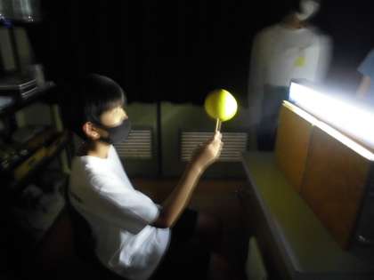 部屋を暗くして,少しづつ月を動かしていくと,月の輝いている部分が動いていきました。目で見て確かめることで,深い学びにつながりました。