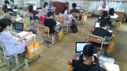 デジタル教科書でブロックの動かし方を確認し問題に取り組みました。