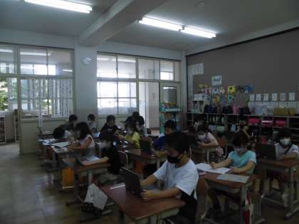 図工で「お話の絵」の下書きにとりかかりました。なるべく中心に描きたいものを大きく描くことを意識してみました。画用紙の向きを変えながら「もう少しこっちかな」「大きくかけてる?」ぶつぶつと言いながら,緊急事態の中も静かにがんばって取り組んでいました!!