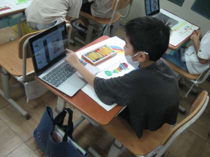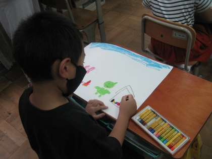 クレパスで,丁寧に色を塗りながら,描き進めていました。どんな絵が完成するのか楽しみです。