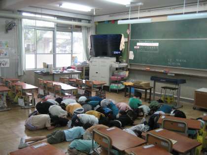 机を教室の両端に寄せて,バリケードを作り,中央に集まりました。教室の鍵をかけたり,窓を閉めて鍵をかけたりもしました。