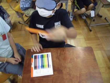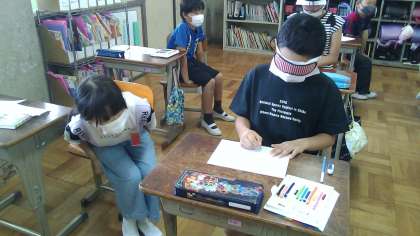その後アイマスク体験をし,目が見えない人の立場になって,絵を描きました。子どもたちは見えない人の思いを感じました。